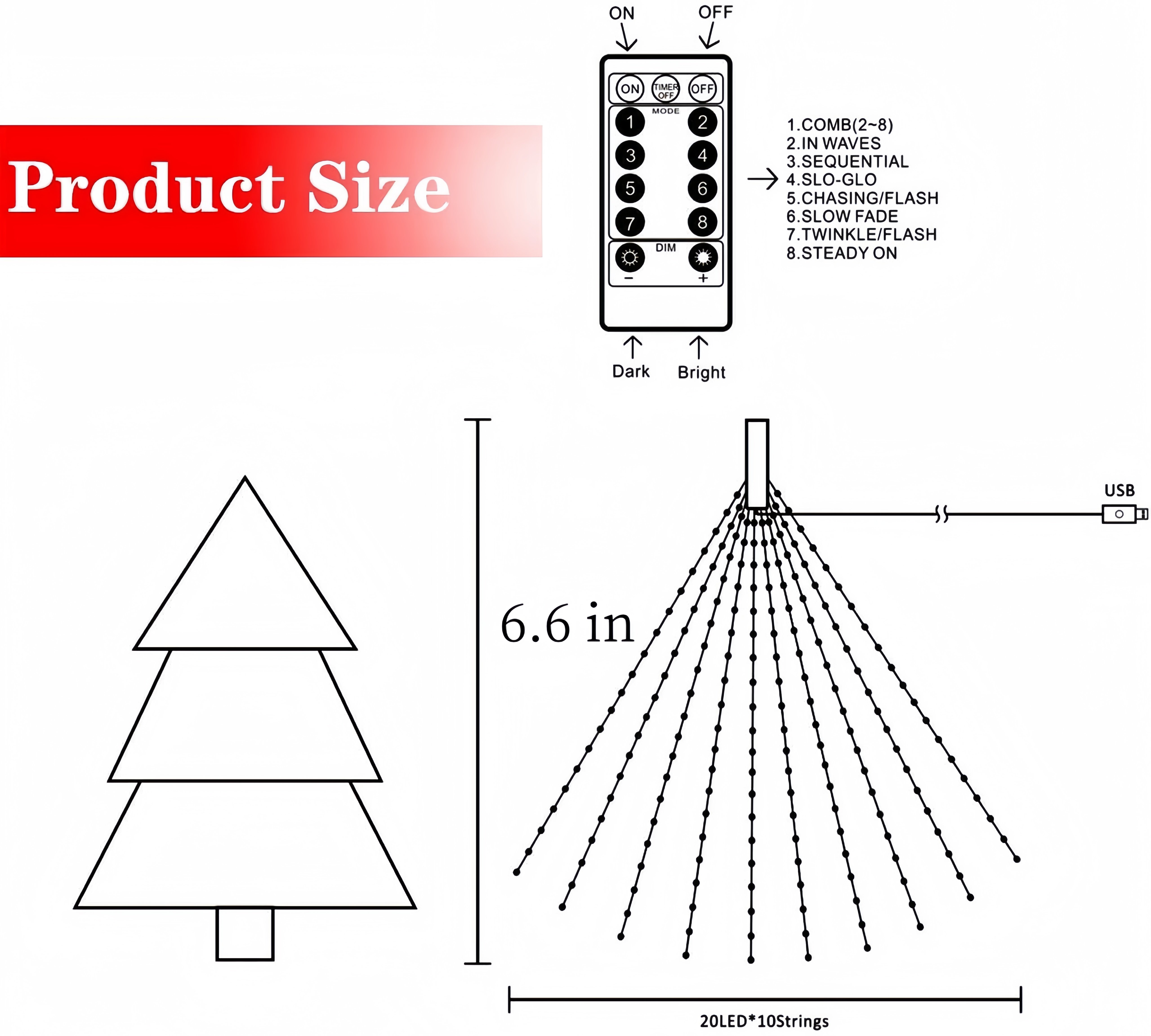 *Solar energy LED parameters: 3.3 ft 100 lights/6.6 ft 400 lights/9.8 ft 600 lights