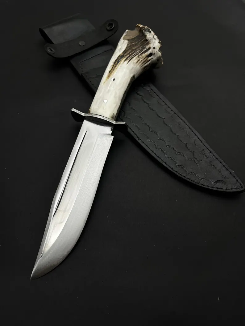 Otkrijte naš oštar lovački nož s drškom od jelenjeg roga, preciznom oštricom i pravim jelenjim rogom. Ovaj kompaktan, ali čvrst nož savršen je za ljubitelje prirode, preživljavače i avanturiste. S oštrom, ručno kovanom oštricom i udobnom drškom od jelenjeg roga, ovaj nož nudi izvrstan hvat i kontrolu, što ga čini pouzdanim alatom za kampiranje, planinarenje i razne aktivnosti na otvorenom. Nož dolazi sa stilskom zaštitnom kožnom futrolom za sigurno spremanje i jednostavan pristup. Bez obzira pripremate li hranu, režete li uže ili rezbarite drvo, ovaj svestrani nož nezamjenjiv je pratitelj za vaše avanture na otvorenom.